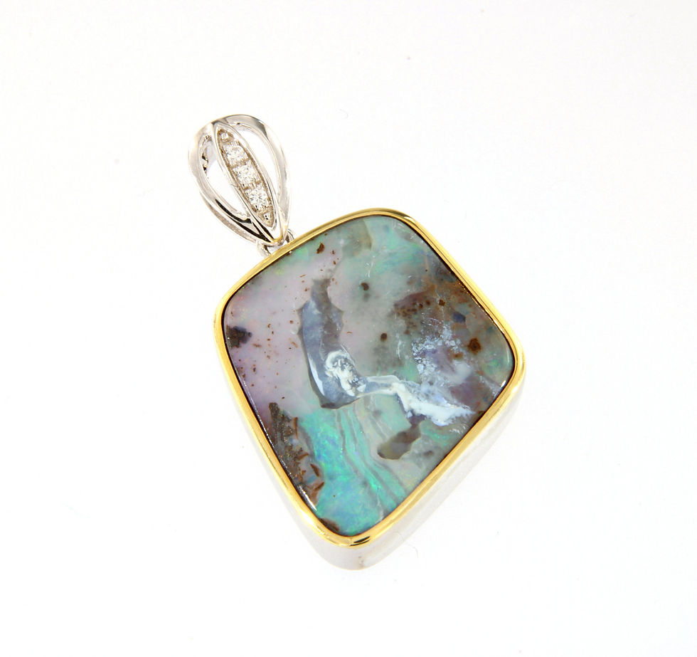 Anhänger mit buntem australischem Opal handgefertigt in Sterlingsilber